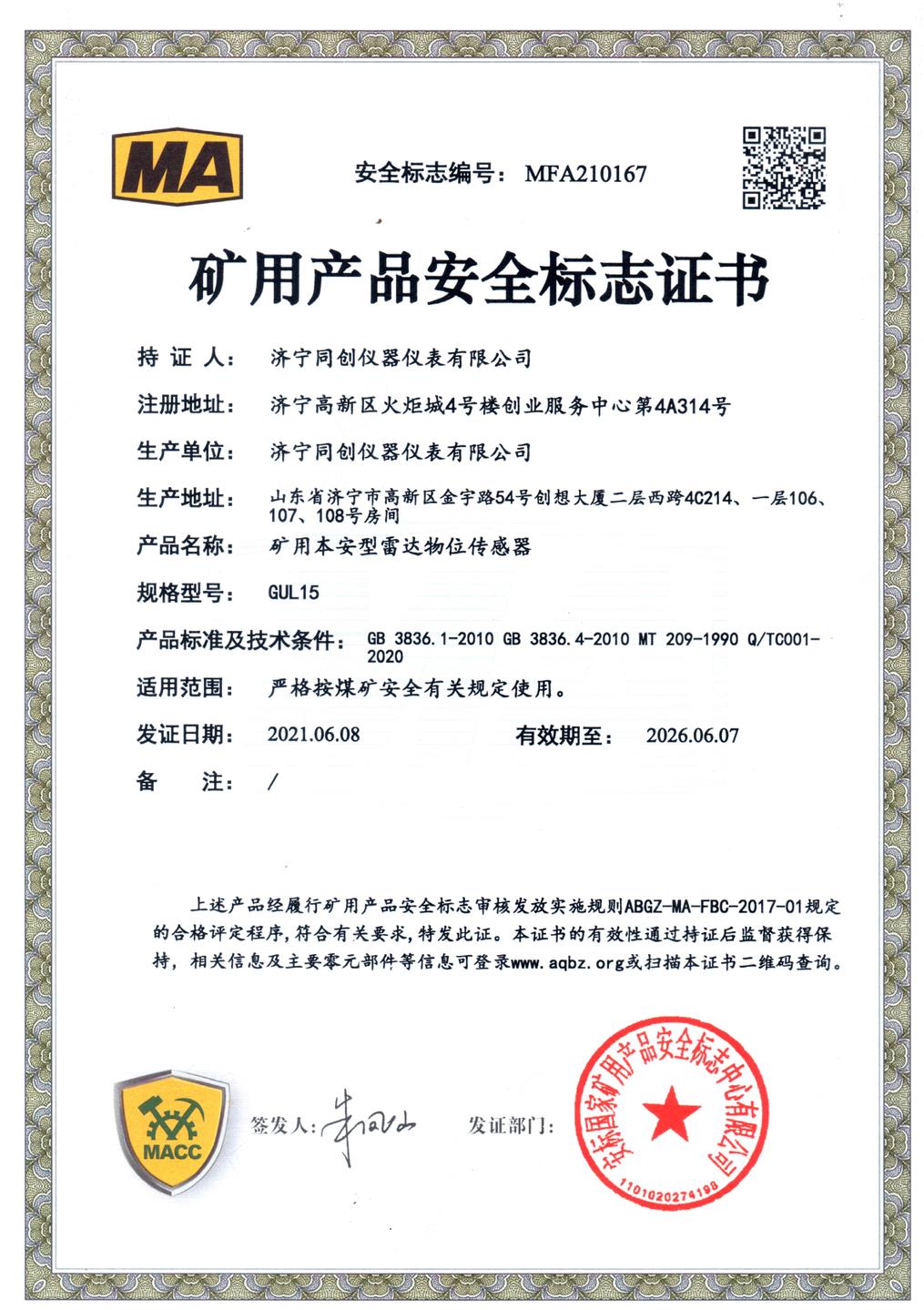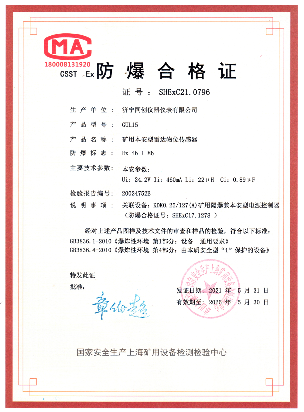 GUL15防爆合格證