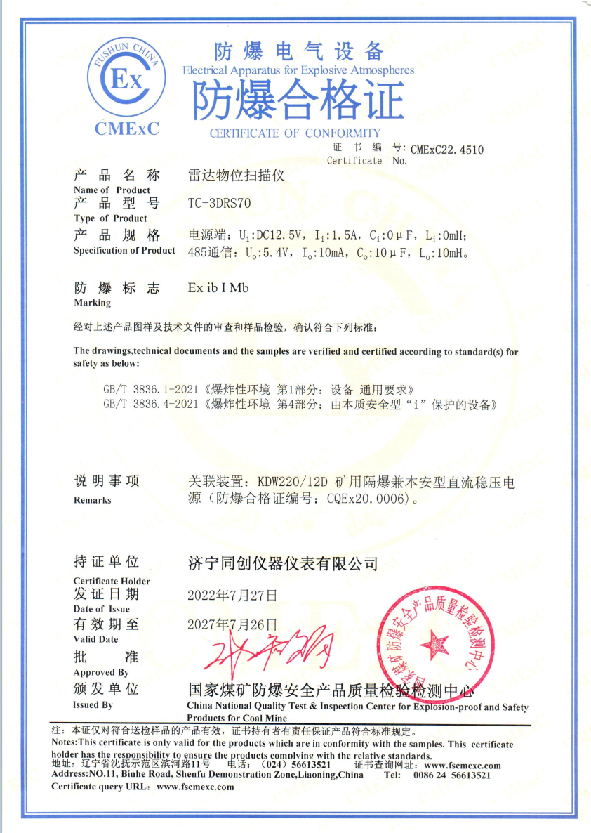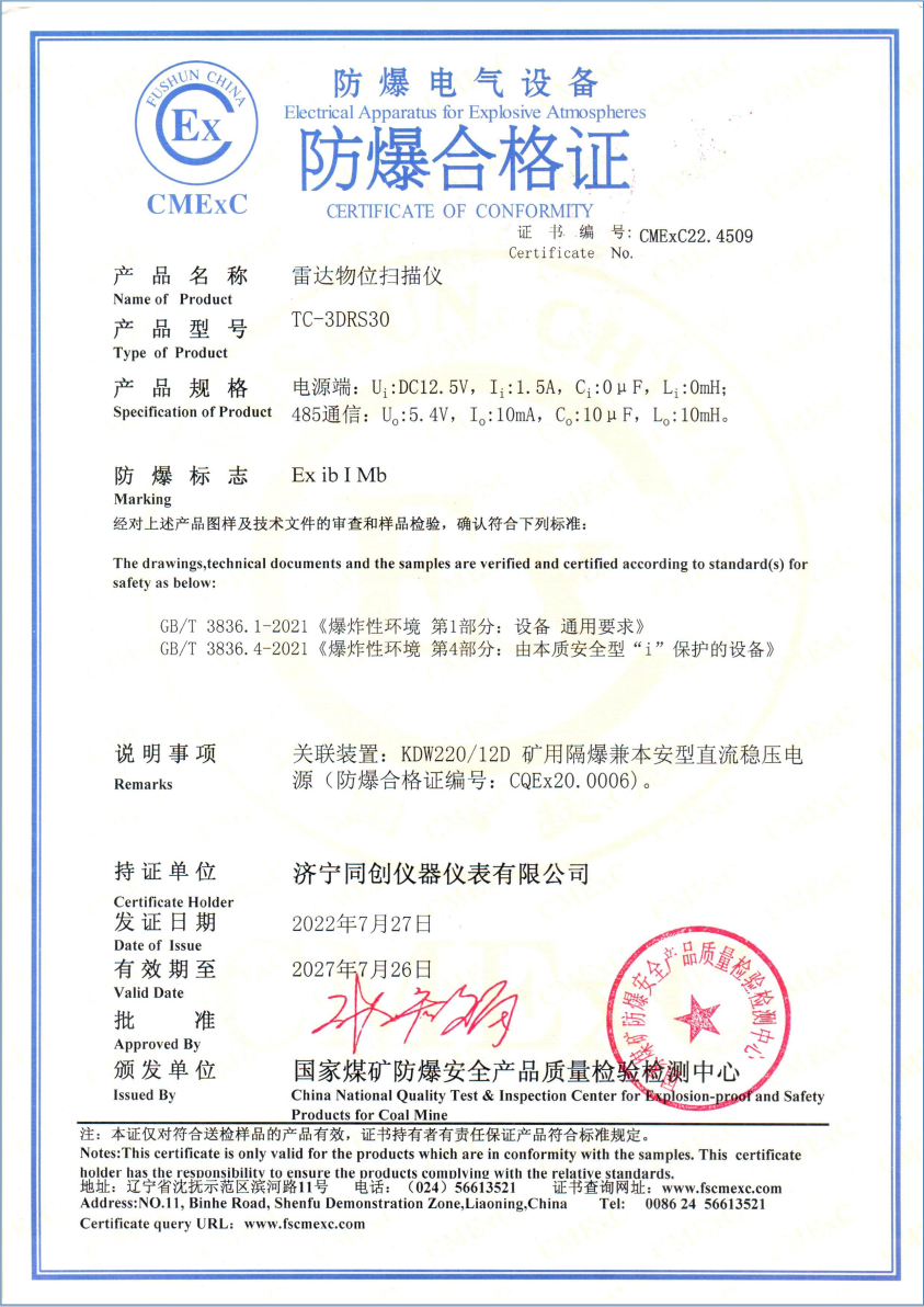 山東同創(chuàng)儀表有限公司主營儀表:調(diào)頻連續(xù)波雷達(dá)物位儀、本安型超聲波液位計、隔爆兼本安型電磁流量計、隔爆兼本安型超聲波流量計、本安型電磁流量計。